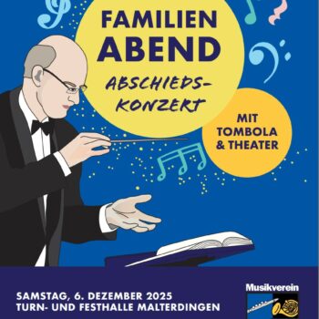 Einladung zum Familienabend am 6.12.2025 Der Musikverein Malterdingen lädt herzlich zum diesjährigen Familienabend am Samstag, 6. Dezember 2025, um 19:30 Uhr in die Turn- und Festhalle Malterdingen ein. Dieser Familienabend wird ein besonderer sein: Wir bedanken uns bei unserem Dirigenten Michiel Oldenkamp für 16 Jahre musikalische Leitung und verabschieden ihn im Rahmen eines festlichen Konzertabends. […]