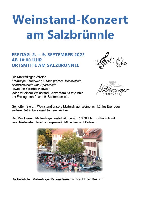 sowie der Weinhof Hildwein laden zu einem Weinstands-Konzert am Salzbrünnle